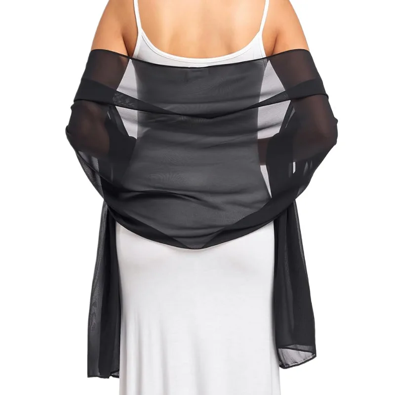 This elegant chiffon shawl adds a touch of sophistication to any outfit.