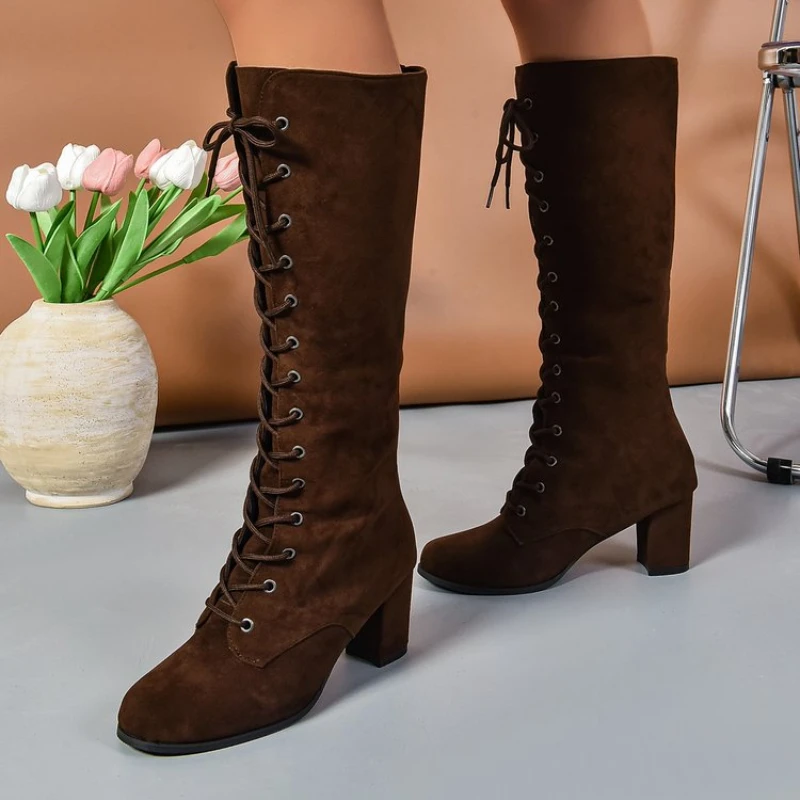 Step into style and comfort with these 2024 New Autumn Trend boots designed for modern women. Crafted with premium materials, they offer a soft yet durable feel for all-day wear. The mid-calf length provides elegant coverage while keeping your legs warm during cooler months. Featuring a stylish lace-up design, these boots add a fashionable edge to any outfit. The middle heels are perfectly balanced to provide height without compromising comfort. Ideal for casual outings, office wear, or evening events, these boots are versatile enough for any occasion. The non-slip sole ensures stability and confidence in every step. Designed with both style and function in mind, they effortlessly combine trend-forward aesthetics with practicality. Pair them with skirts, dresses, or skinny jeans to complete a chic autumn look. Elevate your wardrobe this season with these must-have knee-high lace-up boots that embody both elegance and comfort.